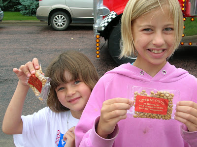 and their children will be at home with you.” — Ps. 102:28 (The Message) Father-in-law, gun on his shoulder, never missed marching in a Fourth of July parade. Why should this day be any different? Paul Lee missed our parade this year, but he surely marched to freedom’s beat on Golden Streets. Fruits of the harvest (our family’s homemade soy snack) tossed from a neighbor’s parade float. We sit in lawn chairs and worship here, by a flatbed trailer parked at river’s edge. The Spirit rests on Chris (of Experiencing Grace and Peace). Chris delivered a Sunday message of hope and freedom that unshackles souls. (An eagle soared behind him as he spoke.) Daughter, making rings from blades of grass.