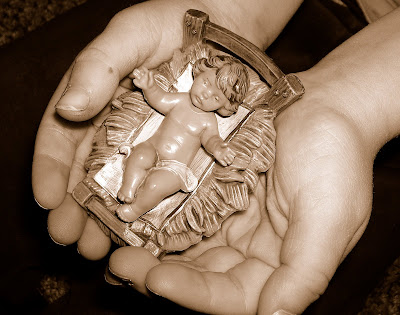 We have the same baby Jesus for our nativity set. Ours is removable, so our Advent tradition is to hide baby Jesus to build anticipation for our little ones. (Ok, how blasphemous is it that baby Jesus is cooped up in a buffet silverware drawer??).
