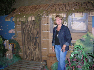 (Carol, of Choose Joy, painted the backdrop for our Vacation Bible School program — Crocodile Dock — and came by last week to check out our decorations.)