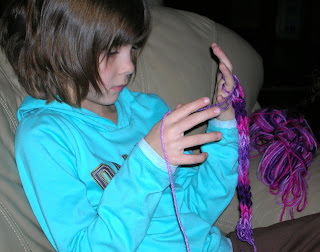 Lydia found the last skein of yarn in the house and looped a purple end around her thumb.