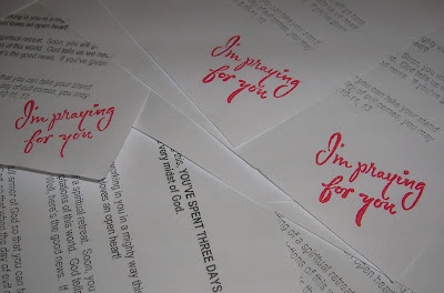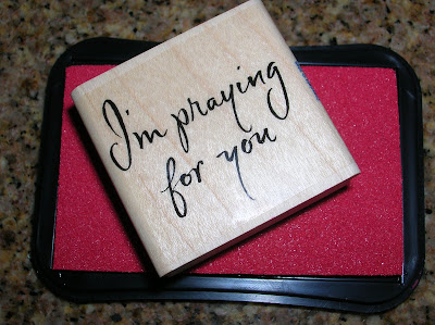I stamped the words on 50 half-sheets of paper. “I’m praying for you.”