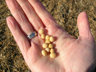 Our soybeans are creamy pearls. And He — our Christ with whom we keep company — rings us with silvery love. The silver ring on my finger reads, in Hebrew: Trust in the Lord.