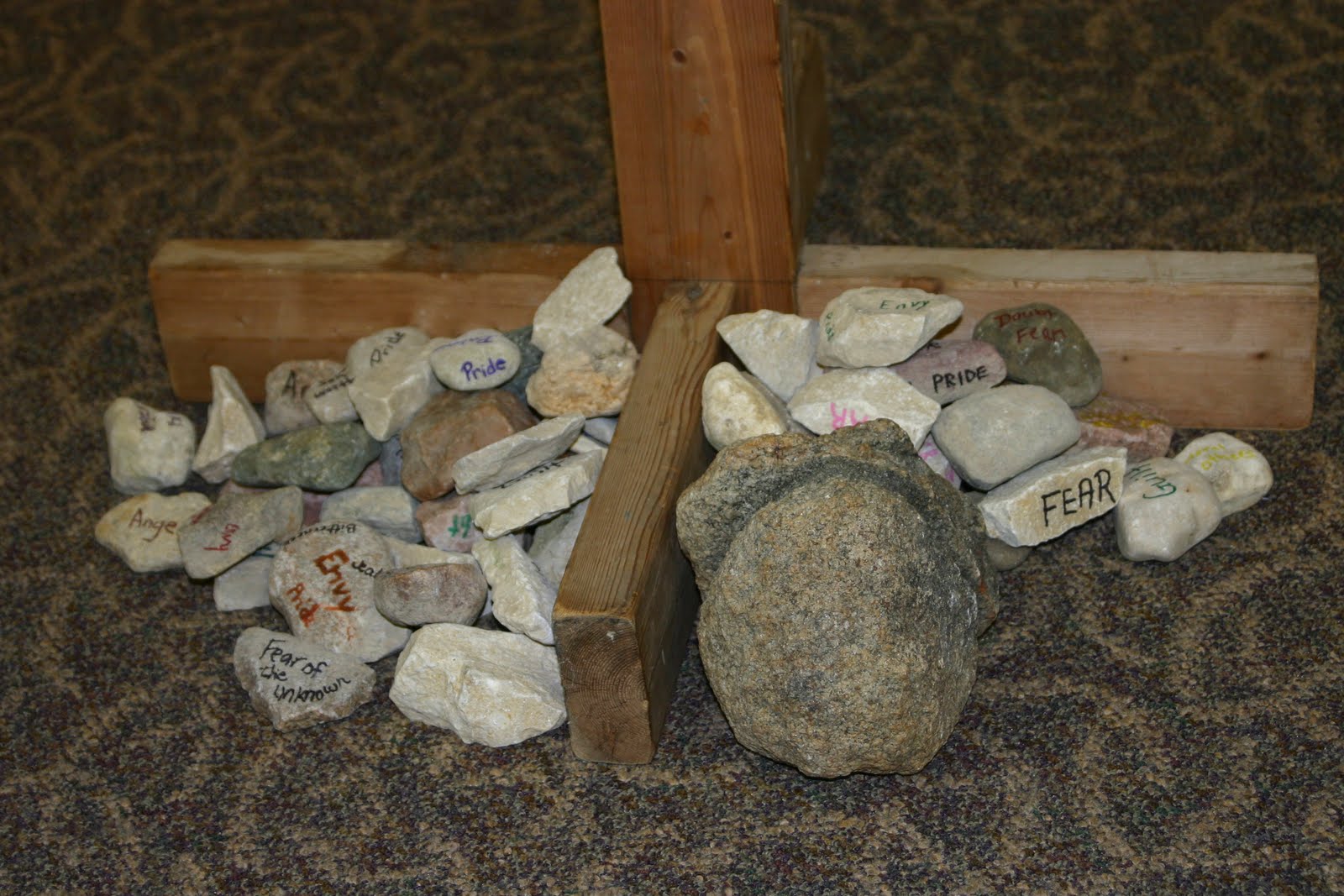 What a great idea. My church did slips of paper in vases on the altar…but I like the rock idea better. It's more tangible. And I love that your pastor tossed them into the river!