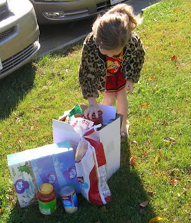So at 10:30 a.m. this morning, my four-year-old and I finished packing the box, added a few Laundromat quarters, gift certificates and crayon drawings, then headed to the town where the woman lived. We showed up at the school with the box.