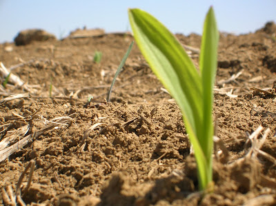The fields beneath that photo of the corn sprouting were dry, too. But something sprouted anyhow. And Good News, sister: Rain is in the forecast. May you feel healing rain on your soul.