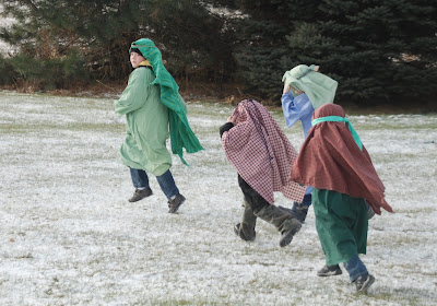 Been enjoying the pictures portraying Jesus' story, especially the one where the green-headed shepherd looks back to make sure the other shepherds are coming, too. I can't wait till my little ones are old enough to act everything out, too.