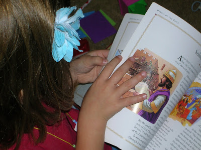 Children’s Book of the Bible. The vivid illustrations and photographs delight us … and alarm us. (This is the book with the snake photo. -smile-.) This story-Bible provides historical context in easy-to-understand language for little girls — and for mommies, too. I always learn something new here.