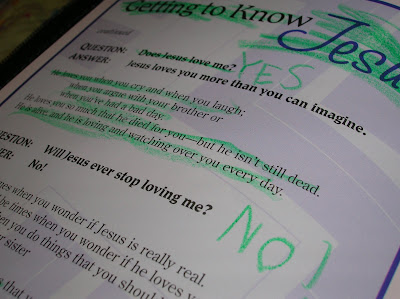 Best line of all (well, actually there were others that were better, but this is the one that slays me): The Bible asked. Don't know why, but I love that. The Bible is always asking me stuff. Stuff I can't answer.