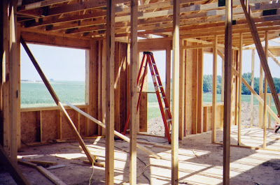 Photos: Our home being built, one two-by-four at a time. Big rectangle overlooking our fields, letting light in …